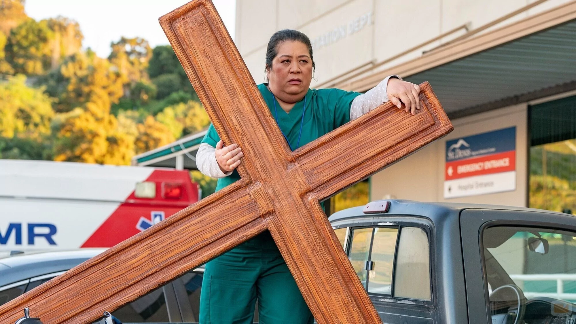 La intérprete Kaliko Kauahi (Val) en una foto promocional del capítulo 1x03 de la serie 'St. Denis Medical' con fecha de estreno el Martes, 19 de Noviembre de 2024.