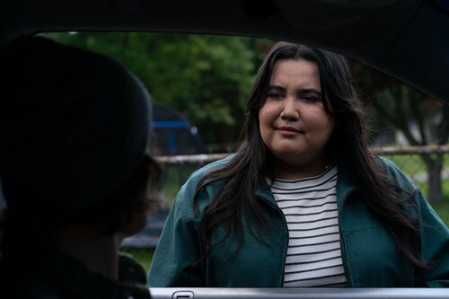 La actriz Karen Rodriguez en una escena promocional del capítulo 'Estrella fugaz' de 'Las esposas cazadoras', la serie de televisión de Netflix.