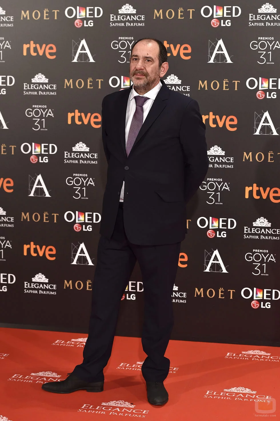 El conocido y veterano actor cinematográfico Karra Elejalde posa ante la prensa en la alfombra roja de los Premios Goya 2017