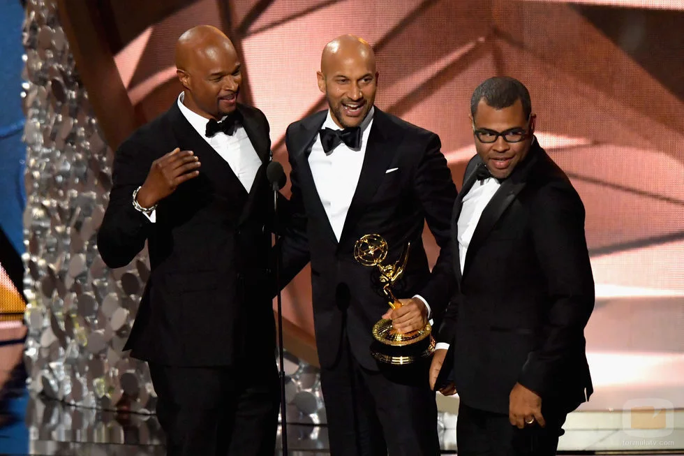 Keegan-Michael Key y Jordan Peele recogiendo su Emmy a Mejor Serie de Variedades en la 68 edición de los Premios Emmy 2016.