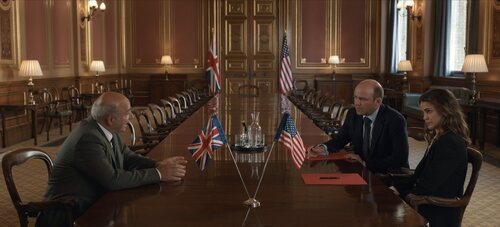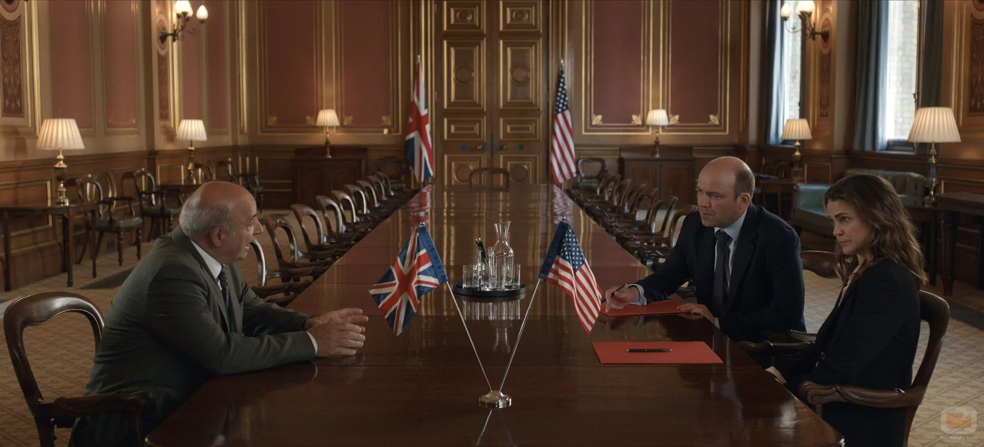 Rory Kinnear y Keri Russell aparecen en una foto promocional del episodio 3x04 de 'La diplomática', la serie de televisión de Netflix.