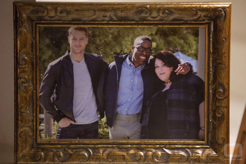 Un cuadro muestra la imagen de tres personajes de la serie: Kevin (Justin Hartley), Randall (Sterling K. Brown) y Kate (Chrissy Metz) en un capítulo de 'This is us'.