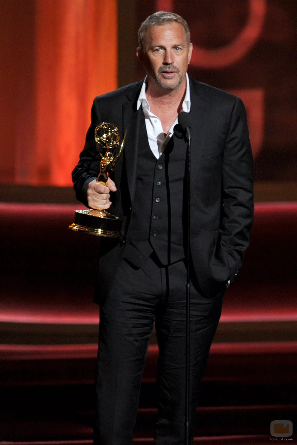 El actor Kevin Costner tras recibir su Emmy al Mejor Actor de Miniserie por su papel en 'Hatfields & McCoys'.