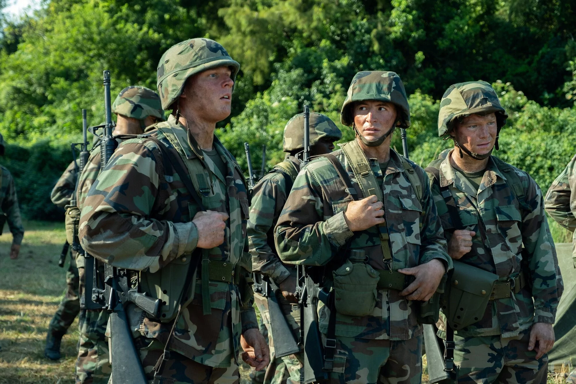 Brandon Tyler Moore y Kieron Moore aparecen en una escena promocional del episodio 1x08 de 'Boots', la serie de televisión de Netflix.
