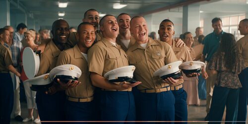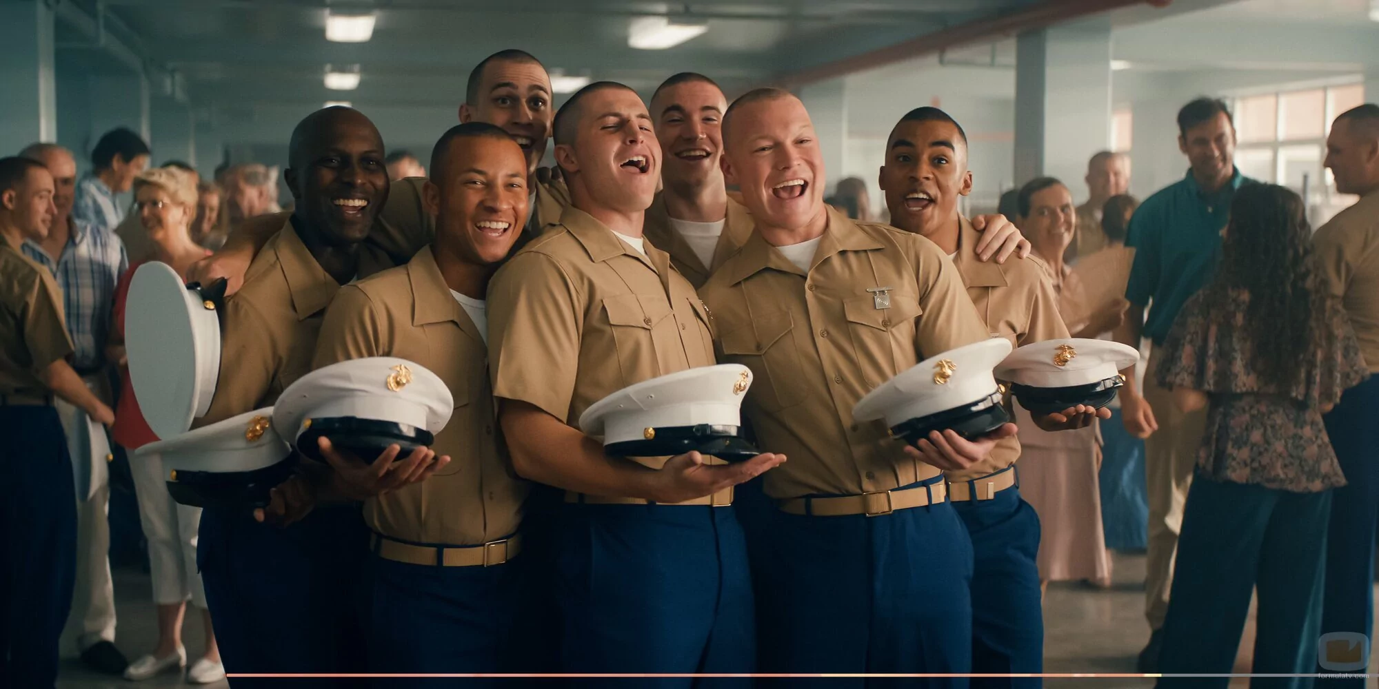 El actor Kieron Moore en una foto promocional del capítulo 1x08 de 'Boots', la serie de televisión de Netflix.
