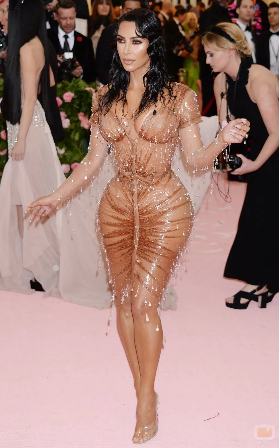 Kim Kardashian lució un look sencillo en color nude, inspirado en la película de Sophia Loren "La estatua desnuda, que se atrevió a llevar a la Gala MET 2019.