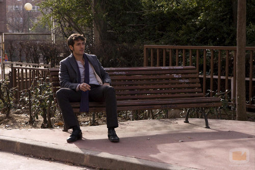 uno de los personajes sentado en un banco y con la mirada pensativa en 'La despedida' de la serie 'Herederos'.