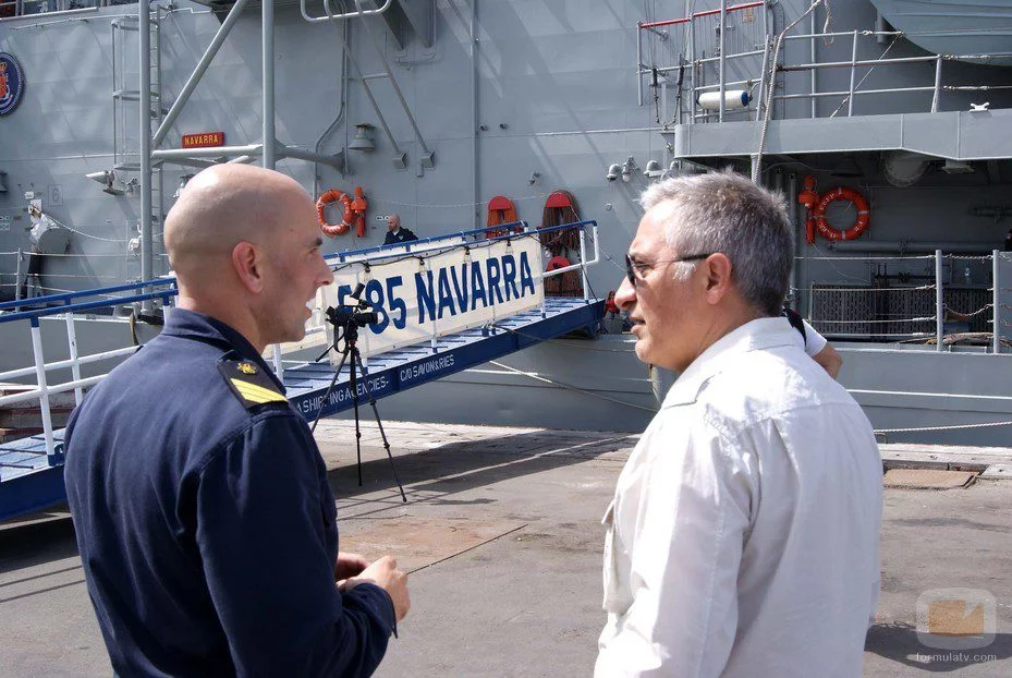 Javier Sardá entra en la fragata Navarra en su nuevo programa.