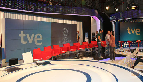 Foto del plató desde donde se realizarán los especiales de la Champions League en La 1 de TVE.