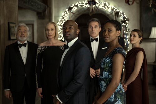 Bradley Whitford, Allison Janney, Keri Russell, David Gyasi, Tracy Ifeachor y Rufus Sewell aparecen en una escena promocional del capítulo 'La mujer de Schrodinger' de la serie 'The Diplomat'.