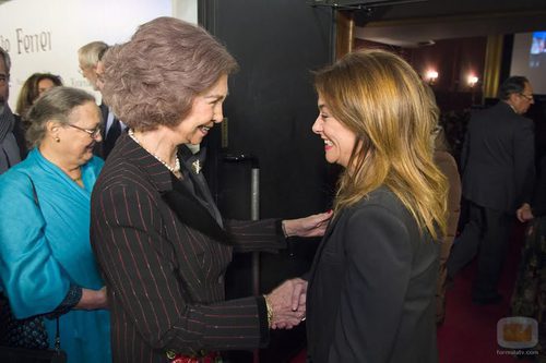La Reina saluda a Toñi Moreno durante el preestreno de la TV Movie 'Vicente Ferrer'