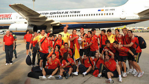 El combinado nacional aterriza en Madrid tras ganar la Eurocopa.
