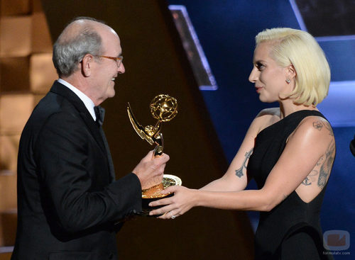Lady Gaga le entrega a Richard Jenkins un Emmy 2015