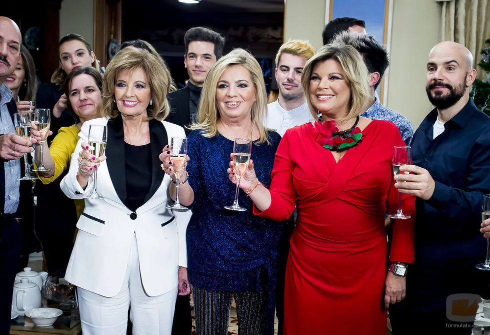 Las tres Campos brindan con los periodistas que acudieron a la rueda de prensa de presentación de la tercera temporada de su docu-reality en Telecinco, 'Las Campos'.