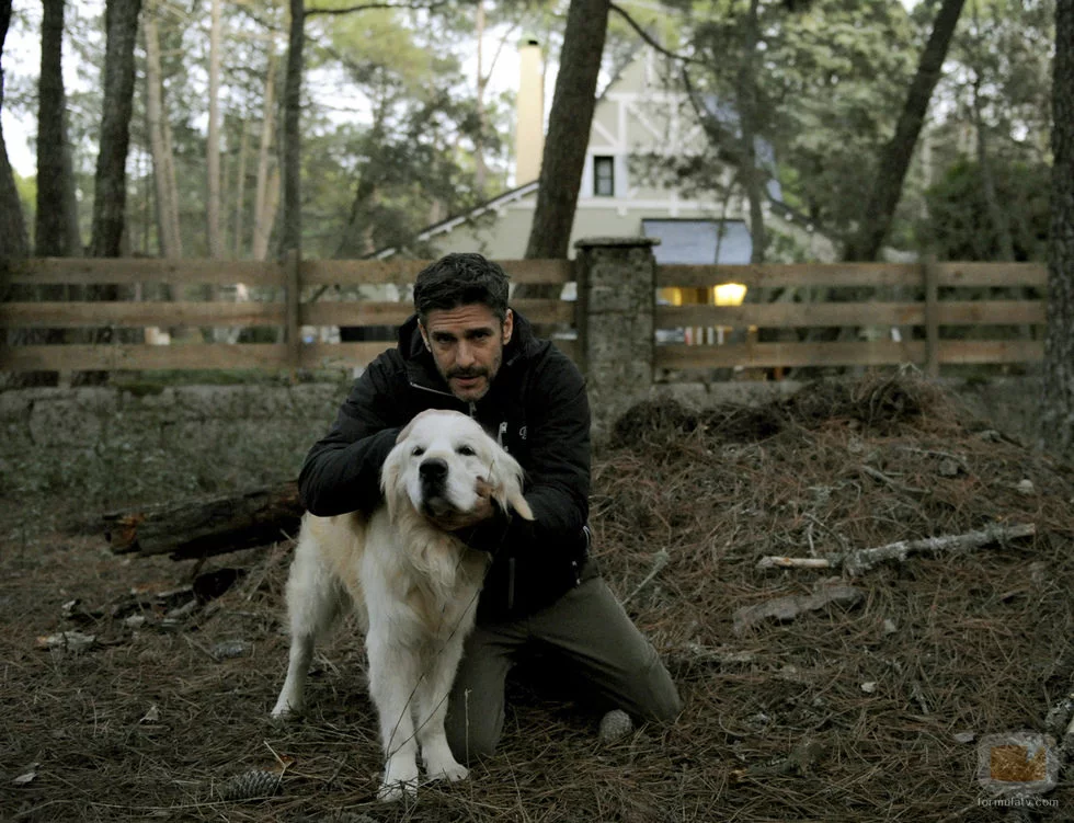 Leonardo Sbaraglia con un perro en 'Luna, el misterio de Calenda'