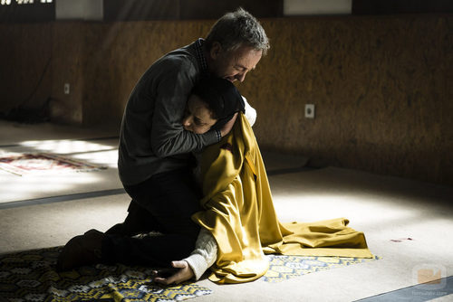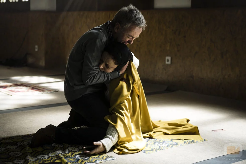 (2x06) Leopoldo (Carlos Hipólito) abraza el cuerpo inerte de su mujer Encarna (María Salgueiro) tras no poder salvarle la vida en 'Vis a vis'.