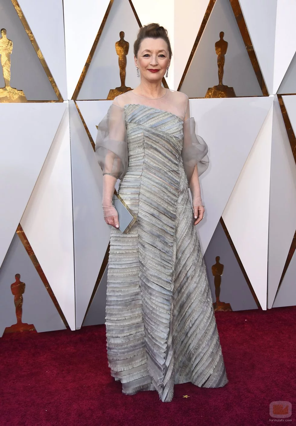 Lesley Manville posa en la alfombra roja de los Oscar 2018