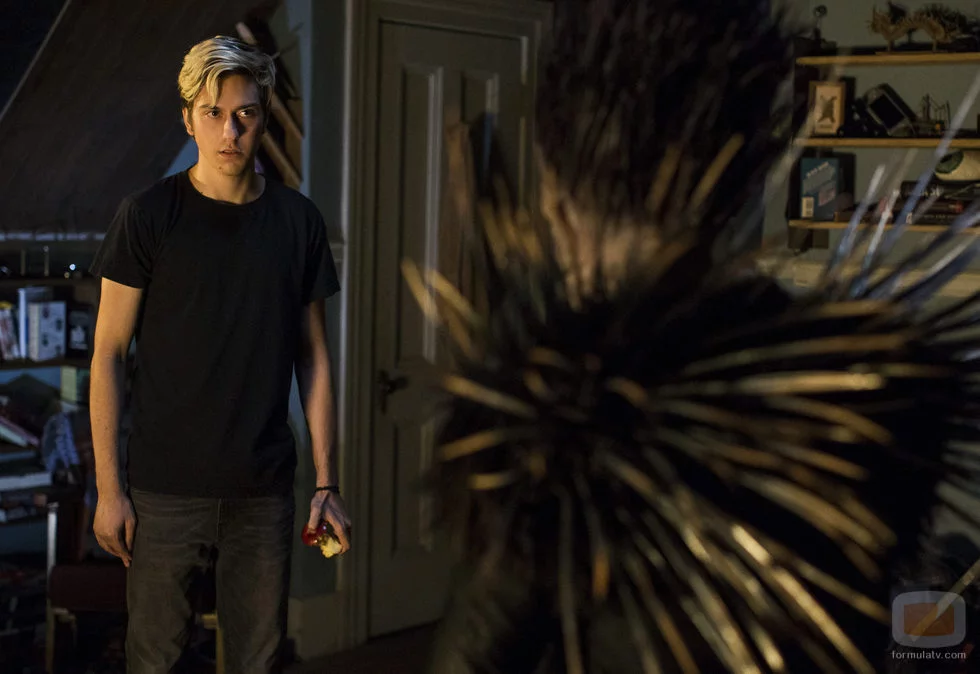 Light Turner, interpretado por Nat Wolff, habla con Ryuk, al que pone la voz Willem Dafoe, el cual ha aparecido desde que el protagonista tiene el cuaderno sobrenatural.