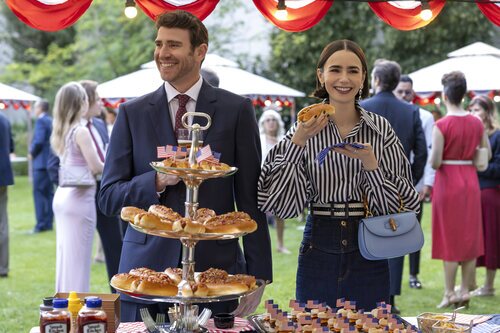 Lily Collins y Bryan Greenberg en el 'En el que Emily va a la embajada' de 'Emily in Paris'