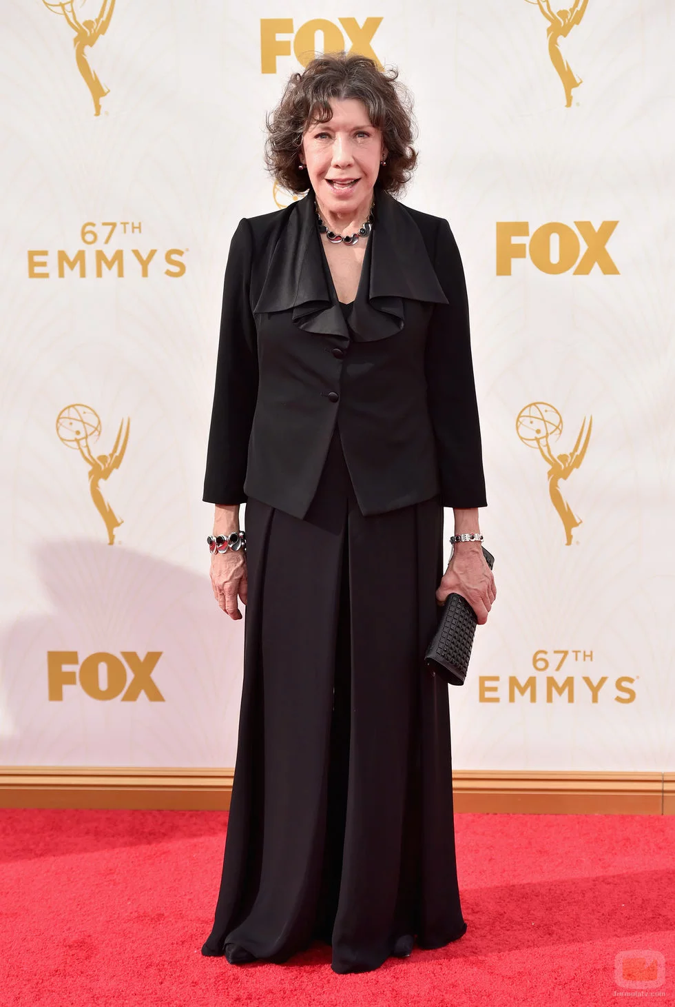 La actriz de 'Grace And Frankie', Lily Tomlin, a su paso por la alfombra roja de los Emmy 2015 en Los Angeles.