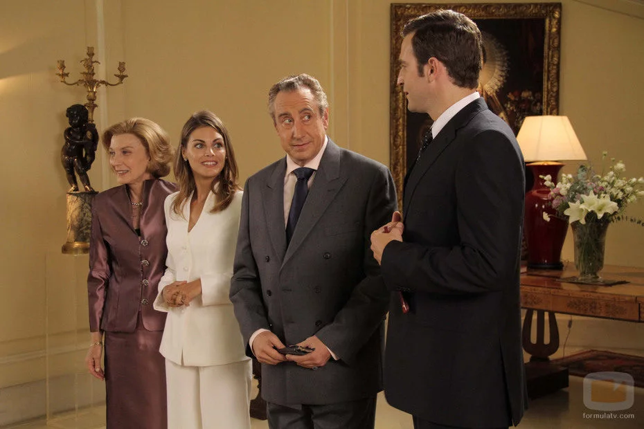 Doña Letizia (Amaia Salamanca) y don Felipe (Fernando Gil) junto a los Reyes (Marisa Paredes y Juanjo Puigcorbé).