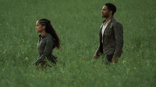 Lou Llobell y Brandon P. Bell aparecen en una foto del capítulo 3x09 de 'Fundación', la serie de televisión de Apple TV+.