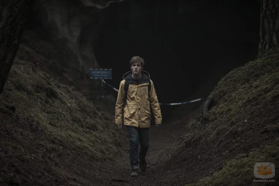Louis Hofmann interpreta a Jonas Kahnwald en 'Dark', en la imagen podemos verle caminando por un oscuro sendero en el bosque.