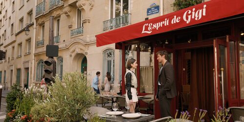 Lucas Bravo y Lily Collins aparecen en una foto promocional del capítulo '¡Bonjour, París' de 'Emily in Paris'.