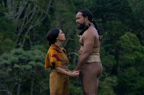 La actriz Luciane Buchanan en una imagen del episodio 1x09 de 'Chief of War', la serie de televisión de Apple TV+.