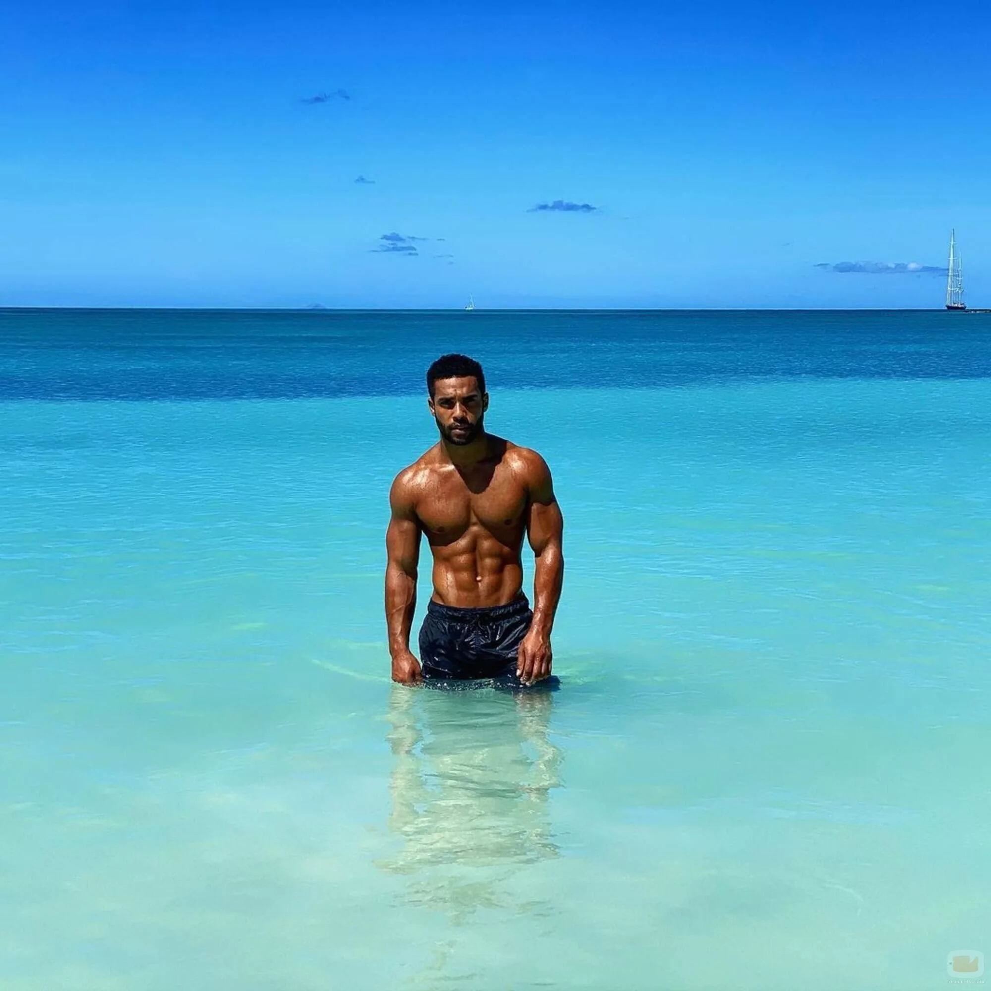 Lucien Laviscount posa en bañador en aguas cristalinas