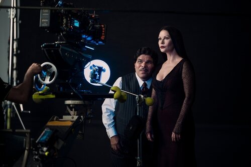Luis Guzmán y Catherine Zeta-Jones aparecen en una imagen del episodio 'Los Miércoles son tristes' de la serie 'Miércoles'.