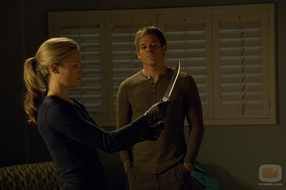 Lumen esgrime un cuchillo junto a Dexter.