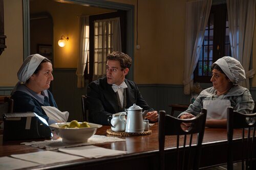Carmen Flores, Teresa Quintero y Enrique Fortún aparecen en una foto del episodio 4x209 de 'La promesa', la serie de televisión de La 1.