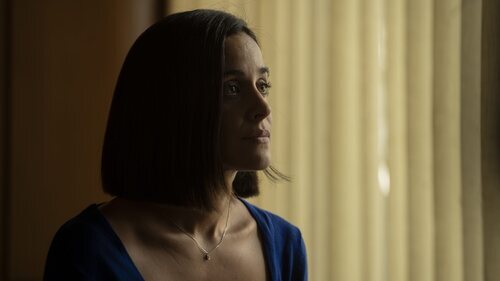 La actriz Macarena García (Irene Adulta) en una imagen promocional del episodio 1x04 de 'La Mesías' con fecha de estreno el Jueves, 26 de Octubre de 2023.