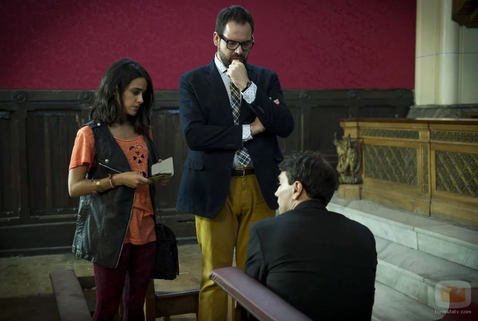 (2x02) Sonia y Lucas hablan en la iglesia con Cristóbal, quien sustituyó a Bornay tras salir de la cárcel y ahora tendrá que vérselas con él.