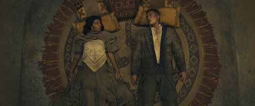 Josha Stradowski y Madeleine Madden aparecen en una escena del capítulo 'El que viene con el Alba' de la serie 'La rueda del tiempo'.