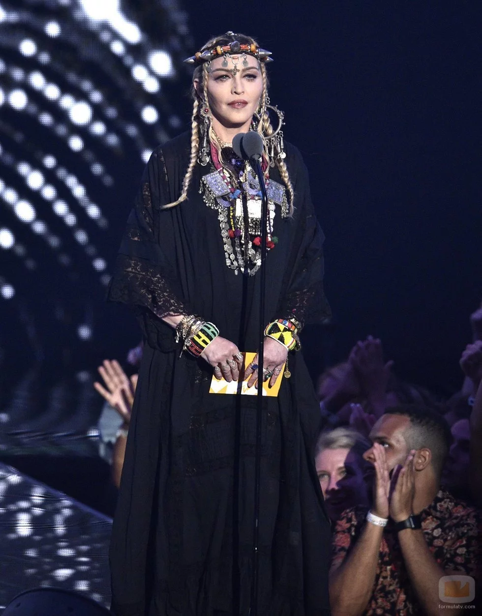 Madonna pronuncia un discurso recordando a Aretha Franklin antes de entregar el premio al Vídeo del Año en los MTV VMAs 2018.
