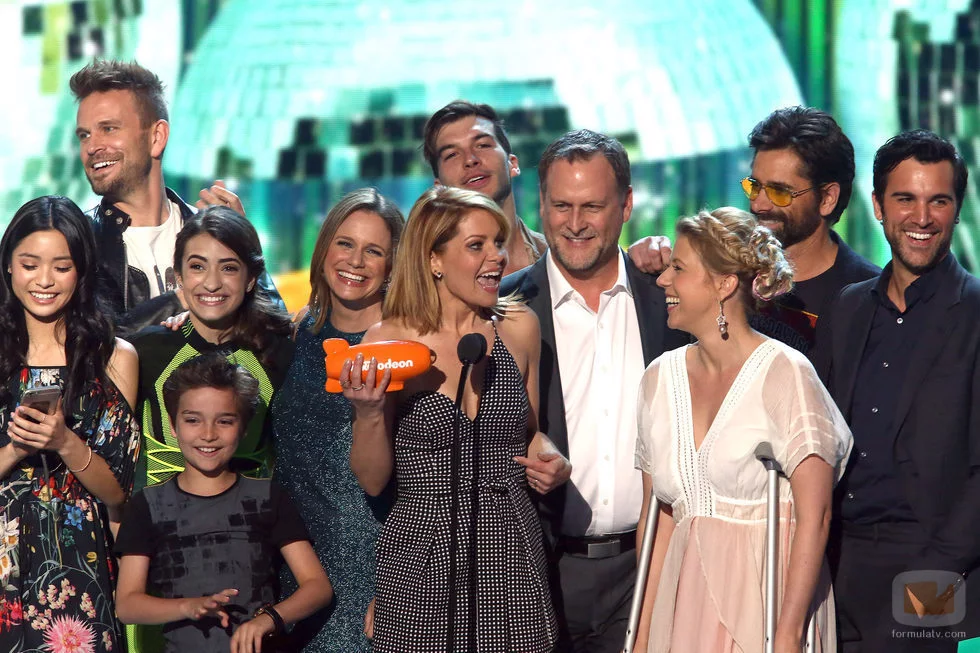EL elenco de actores de 'Madres forzosas' subie al completo para recoger su premio en los Nickelodeon's 2017 Kids' Choice Awards por ser la mejor serie familiar.