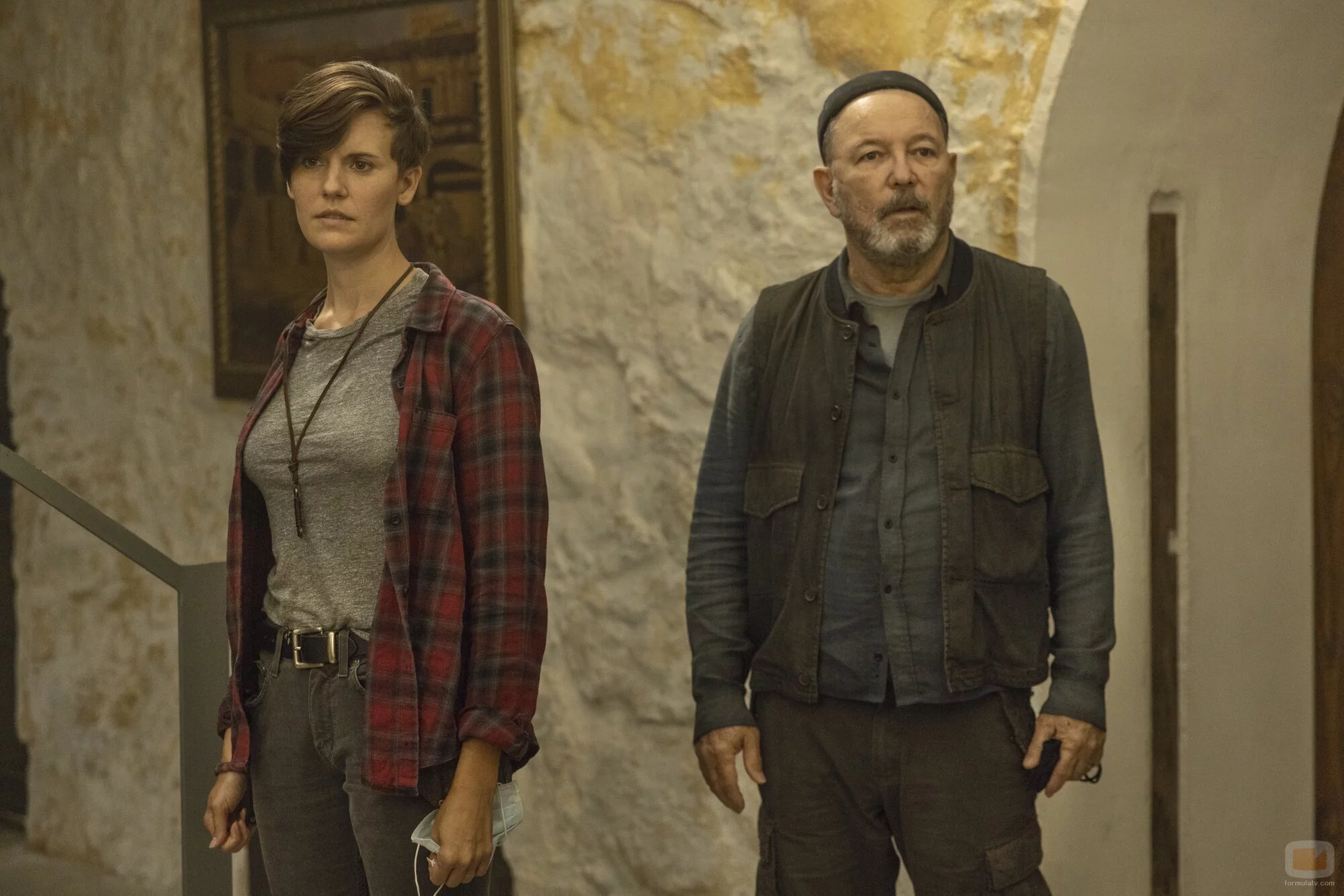 Los actores que dan vida a Althea y Daniel Salazar en una escena de la séptima temporada de la serie postapocalíptica.