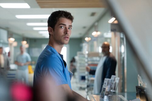 El joven personaje encarnado por el actor manchego, atento en uno de los pasillos del hospital de la serie de Netflix.