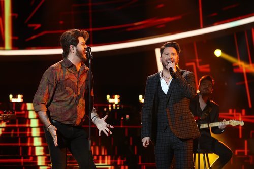 Manu Sánchez y Manu Carrasco forman un dúo para cantar "Me dijeron de pequeño", de Manu Carrasco, en la gala final de 'Tu cara me suena 7'.