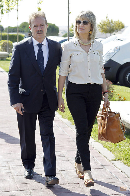 Manuel Campo Vidal y María Rey en el tanatorio de Concha García Campoy