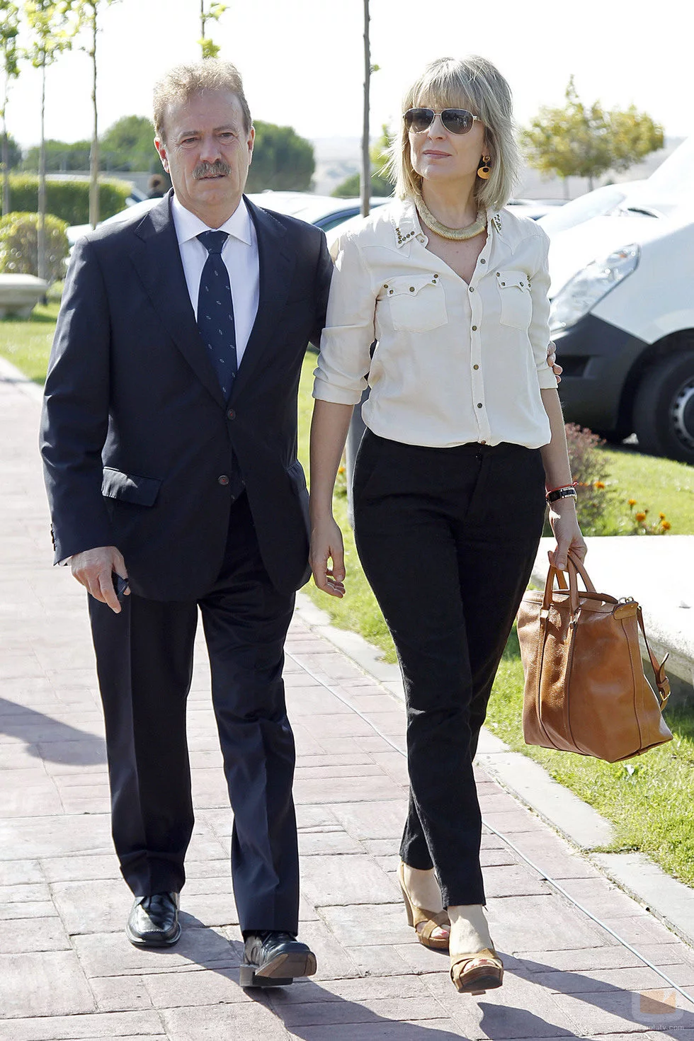 Manuel Campo Vidal, presidente de la Academia de Televisión y amigo personal de Concha García Campoy, acudió al tanatorio con su mujer, la periodista de Antena 3 María Rey.