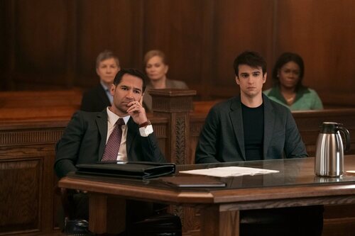 Manuel Garcia-Rulfo y Allyn Moriyon aparecen en una foto del episodio 'La Culebra' de 'The Lincoln Lawyer' con fecha de estreno el Jueves, 17 de Octubre de 2024.