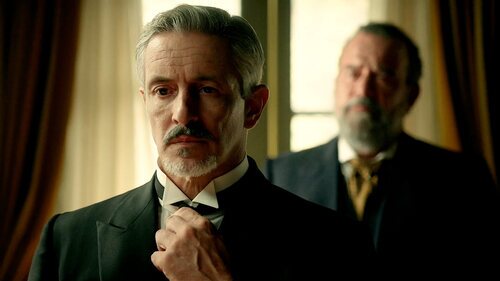 Manuel Regueiro y Fernando Coronado aparecen en una escena promocional del capítulo 'Lunes 29 de septiembre de 2025' de la serie 'La Promessa'.