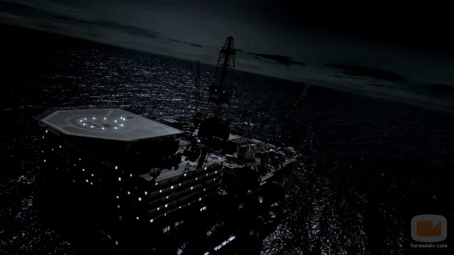 Maqueta de la fortaleza de 'La fuga', en el mar de noche