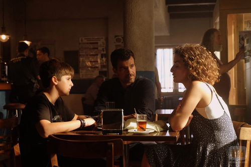 (01x12) Marta (Belén López), Héctor (Rodolfo Sancho) y Nacho (Máximo Pastor) conversan tranquilamente pero con tensión en el bar del pueblo