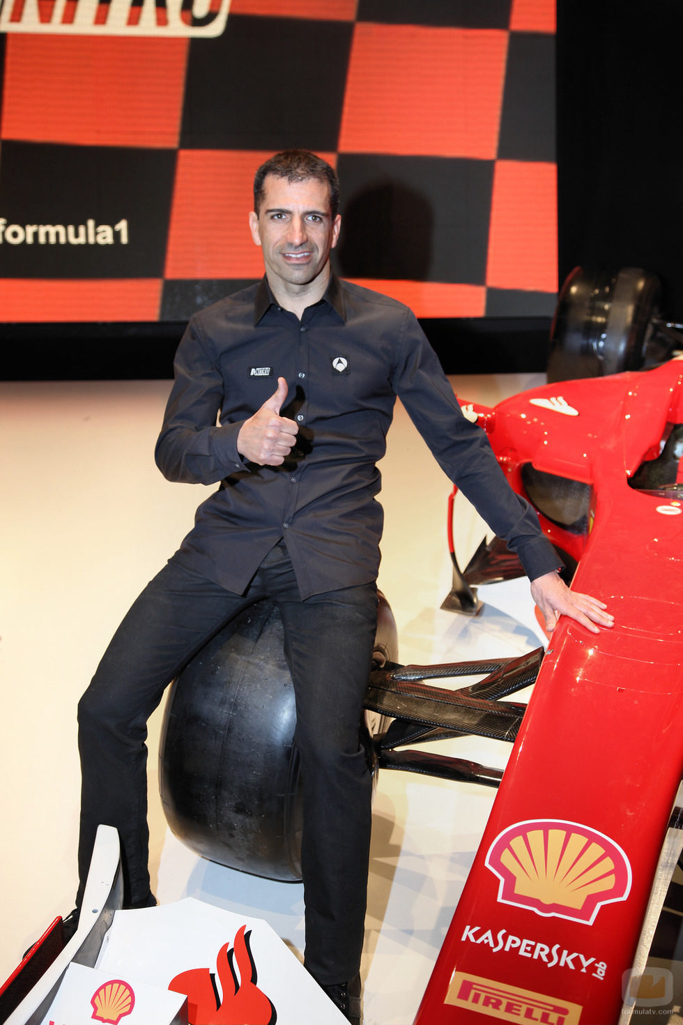 El piloto probador de Ferrari, Marc Gené, posa durante la presentación de la temporada de Fórmula 1 2012 en Antena 3.