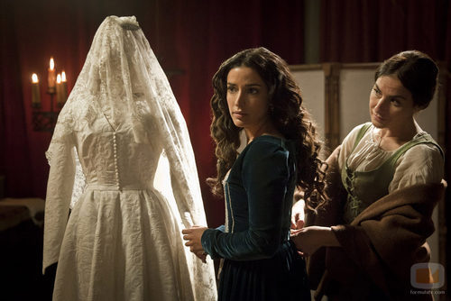 (8x13) Margarita observa su traje de novia mientras dan los últimos retoques al vestido con el que contraerá matrimonio.