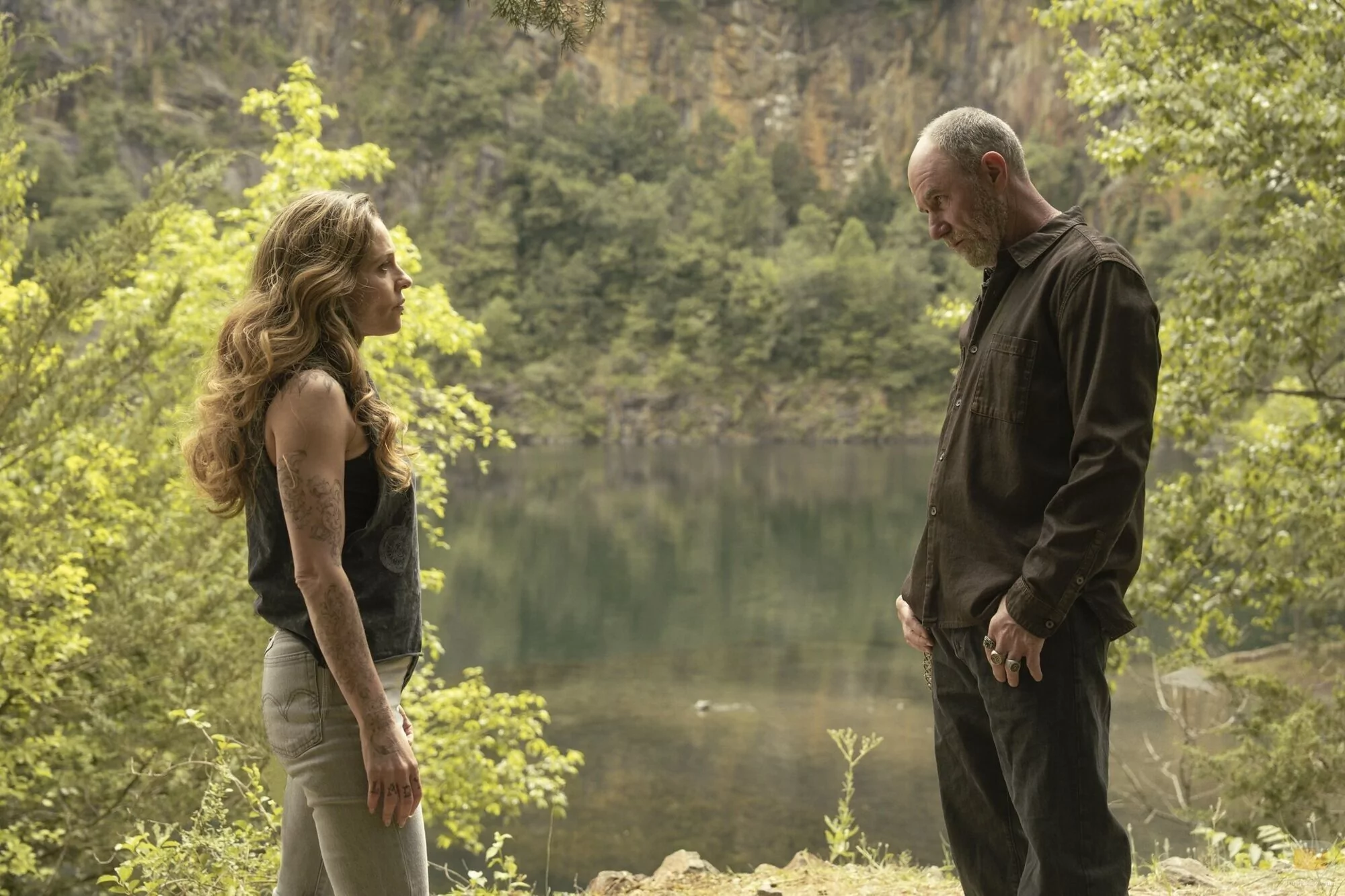 Jamie McShane y Margarita Levieva aparecen en una foto promocional del episodio 1x05 de la serie 'Task', la serie de televisión de HBO.